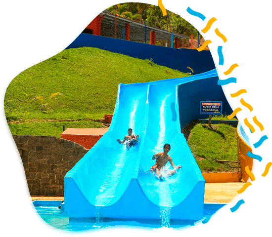 Aqui tem a piscina e toboágua no estilo que você gosta